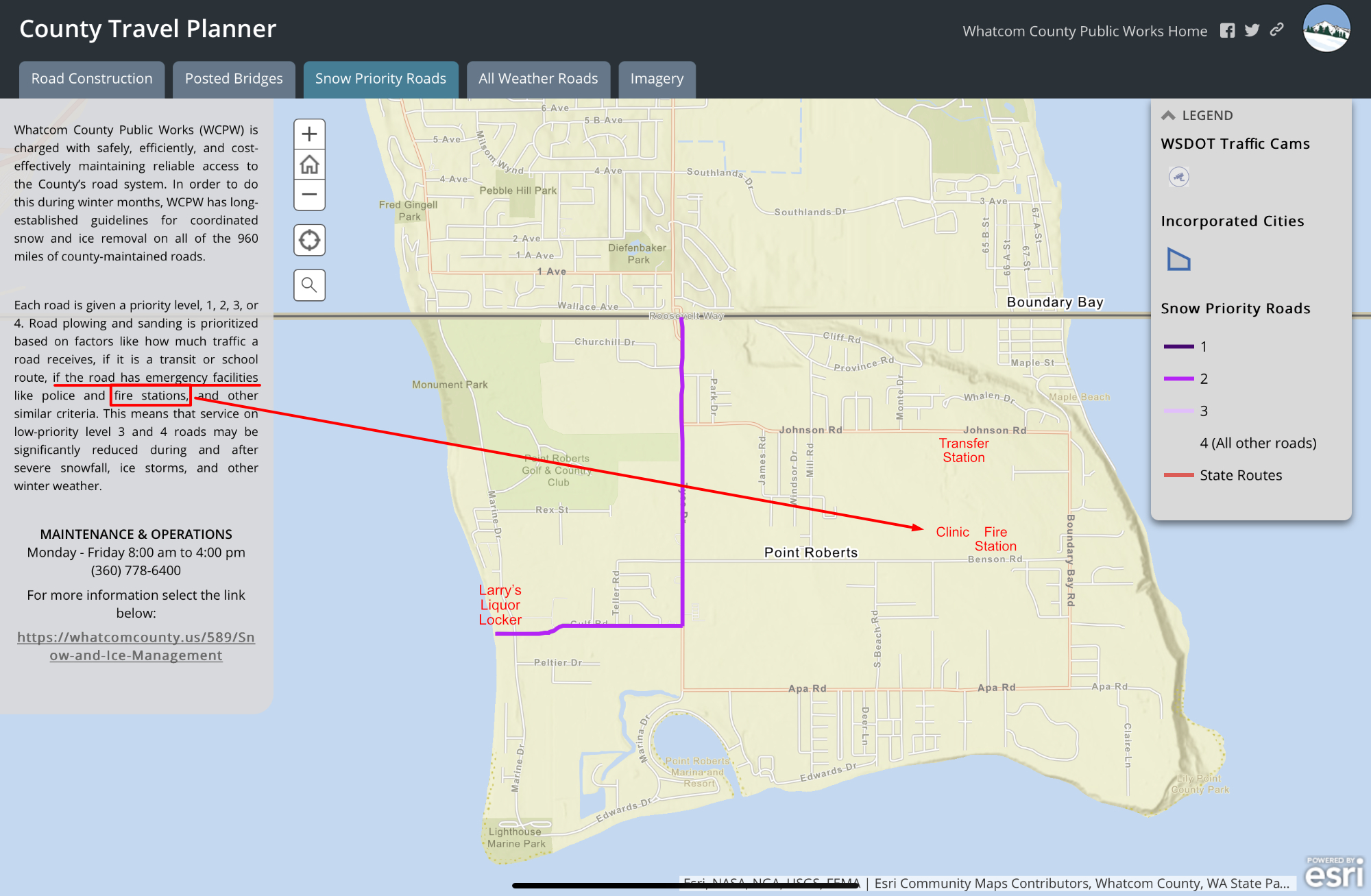 Explaining the rationale behind the Whatcom County snow plowing priorities for Point Roberts