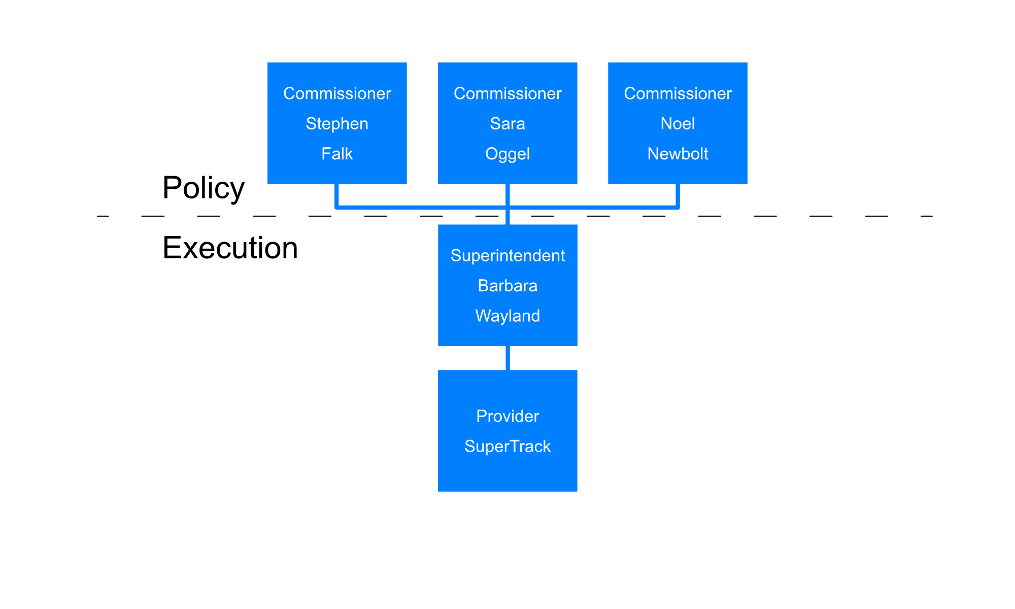 And finally, regarding "how the district operates", by law the superintendent is the chief administrative officer. Commissioners are not supposed to run the district. The three commissioners have equal authority - the chair does not have more authority. This is how it's supposed to operate, according to the law: