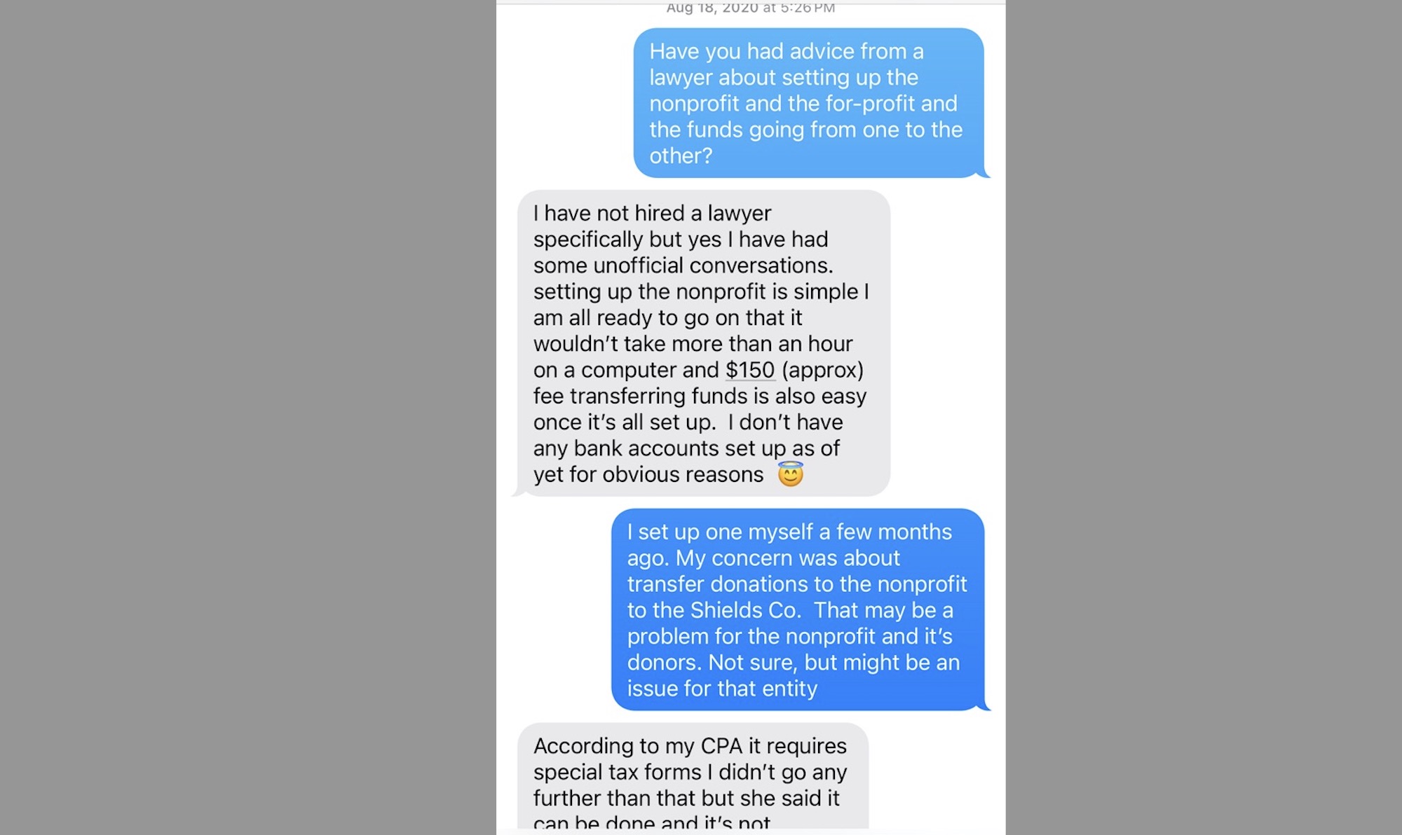 And just before the meeting in August of that year to choose between SuperTrack and Shields, Falk provided advice to Shields (Falk in blue):