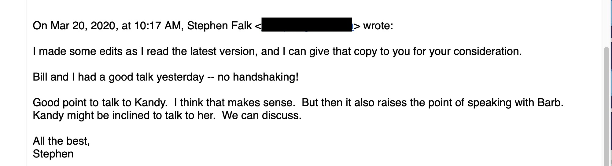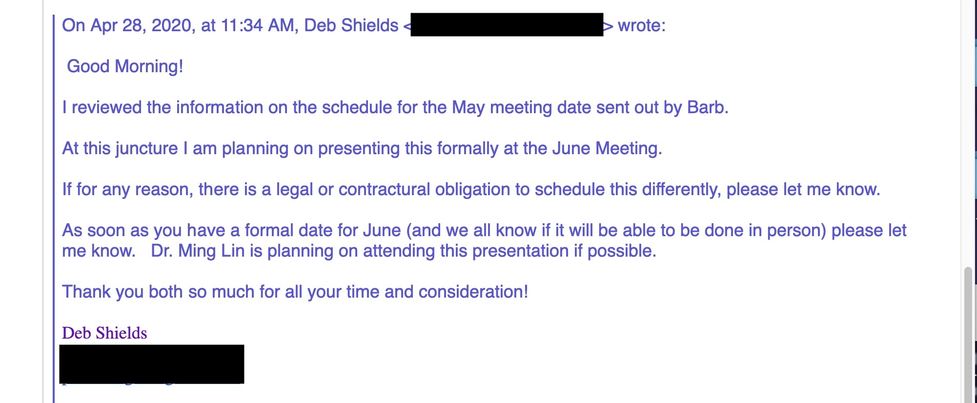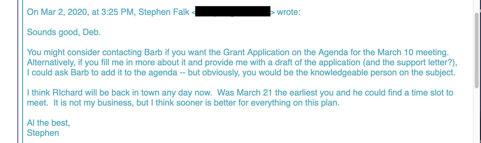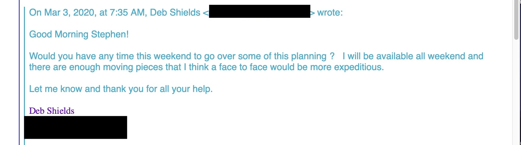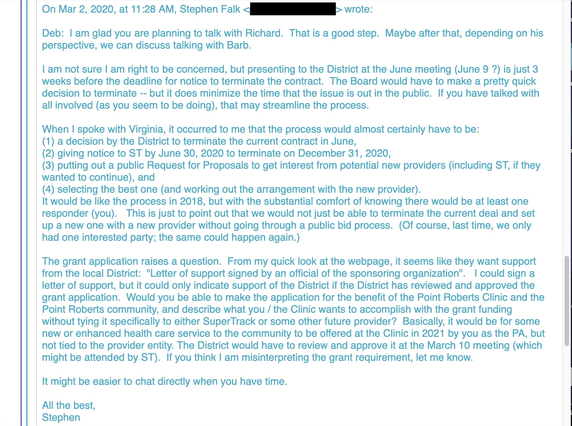 This is deception. In our final installment on the attempted coup of 2020, here is the complete set of emails and texts we have showing the extent of Stephen's involvement with Shields' first attempt to replace SuperTrack. As you read these, remember that he is the chair of the taxing district that she is preparing a bid for, he is hiding his assistance to Shields from the superintendent and other commissioners, and she is a SuperTrack employee until June 6, 2020. If he's deceiving people about his involvement in 2020....