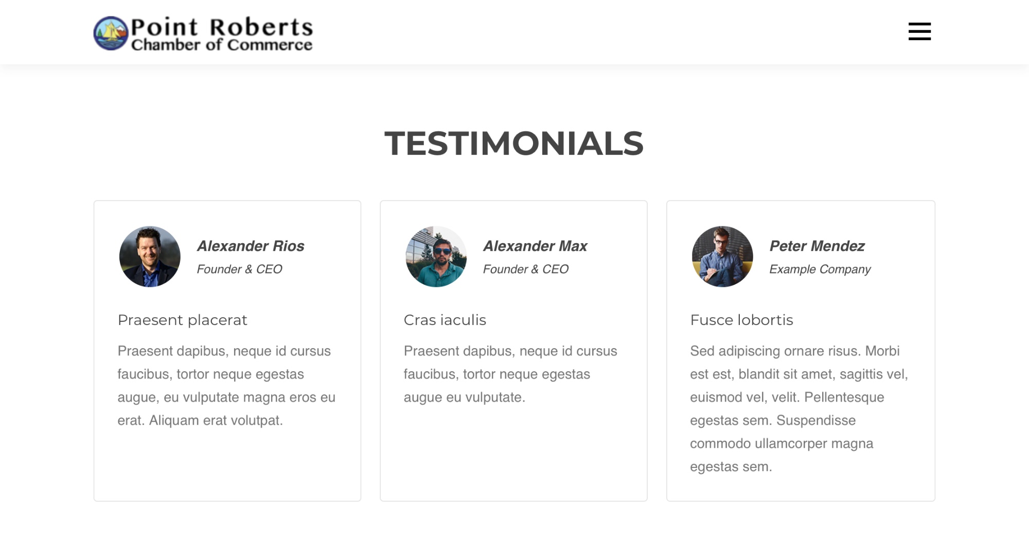 Coincidentally, the Point Roberts Chamber of Commerce web site has a similar problem - try reading the testimonials below: