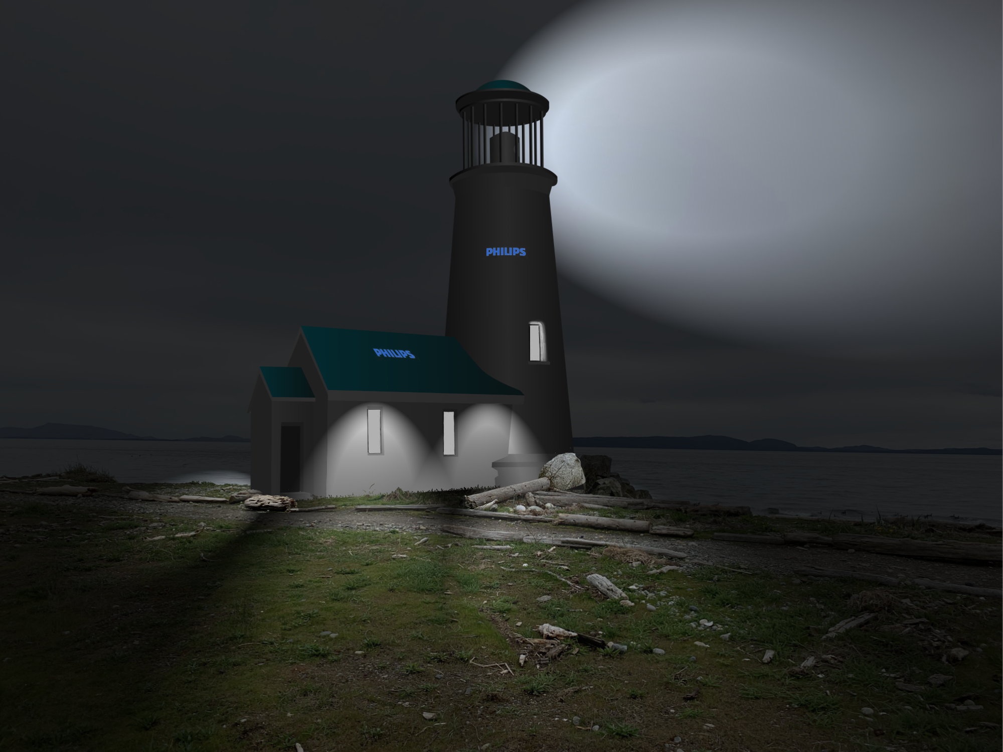 "And finally, last but not least, the icing on the cake. What would Lighthouse Park be without a lighthouse? We are so fortunate to have Philips, the world's leading maker of lighting products, sponsor the Point Roberts Philips LED Light House. The Light House will be a world-class showcase of new energy-efficient lighting products from Philips. From the sconces in the entry to the chandeliers in the stairwell to the one hundred fifteen thousand candle-power beacon with Fresnel lens at the top, the Philips Light House will amaze you with the historic-seeming structure and the modern lighting selections to fit any lifestyle."