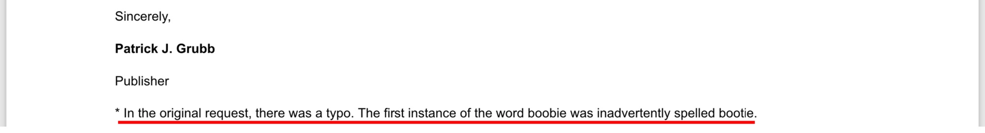 The original version of Grubb's records request called them "blue-footed booties", so Grubb had to later issue a correction: